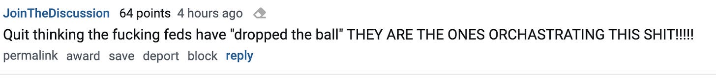 I'm one of the new subscribers who found you from your article. I'd been searching for awhile to find a site, or someone who was tracking the chatter on RW MAGA boards particularly to keep an eye on the potential of violence. Thank you so much for doing this and your courage to attend those rallies and make these reports.