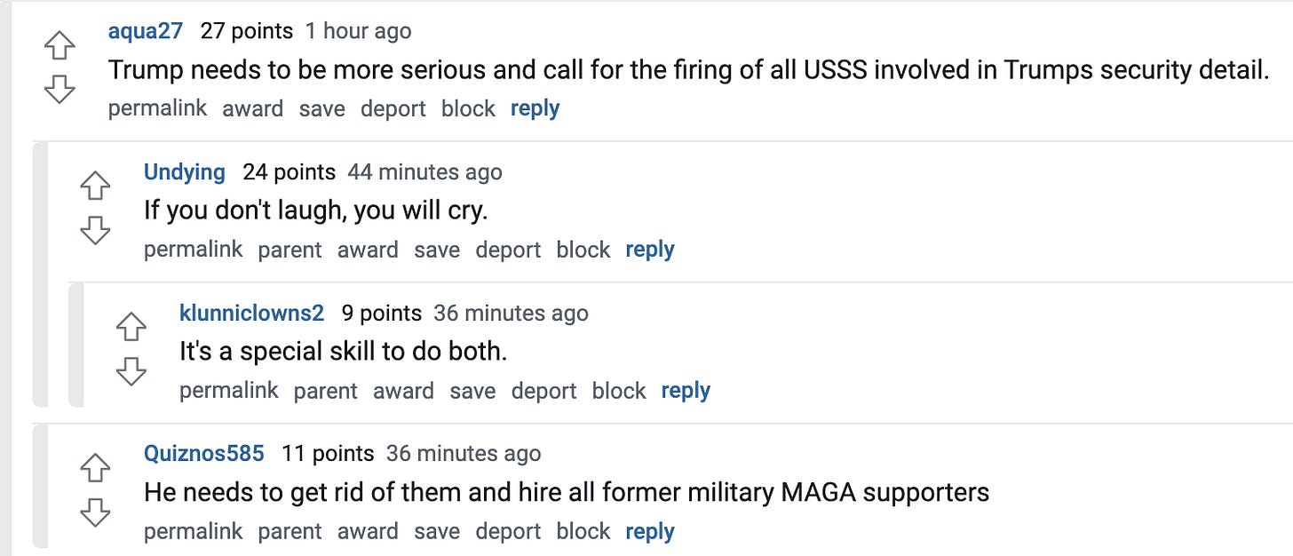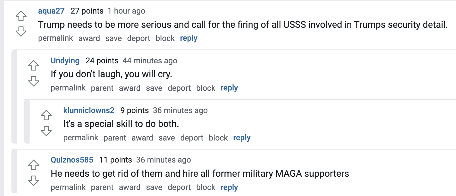 This afternoon brought reports of a man who showed up with an AK-47 on Trump’s golf course to attempt an assassination, though, at the time of writing, it does not seem that he fired any shots before the Secret Service stopped him. Even so, this “second assassination attempt” is the dominant topic of discussion on far-right social media tonight. We’re seeing them flex their fascism with calls for executions of public officials, threats of violence against the media and liberals, and support for Trump-loyal security services. All 10 of the top 10 threads on the forum are about the “assassination attempt” right now.