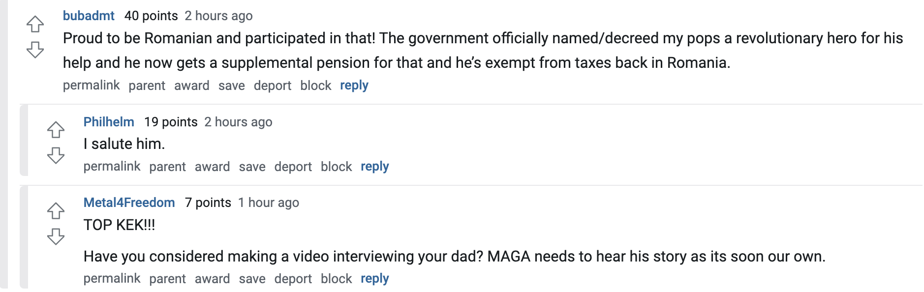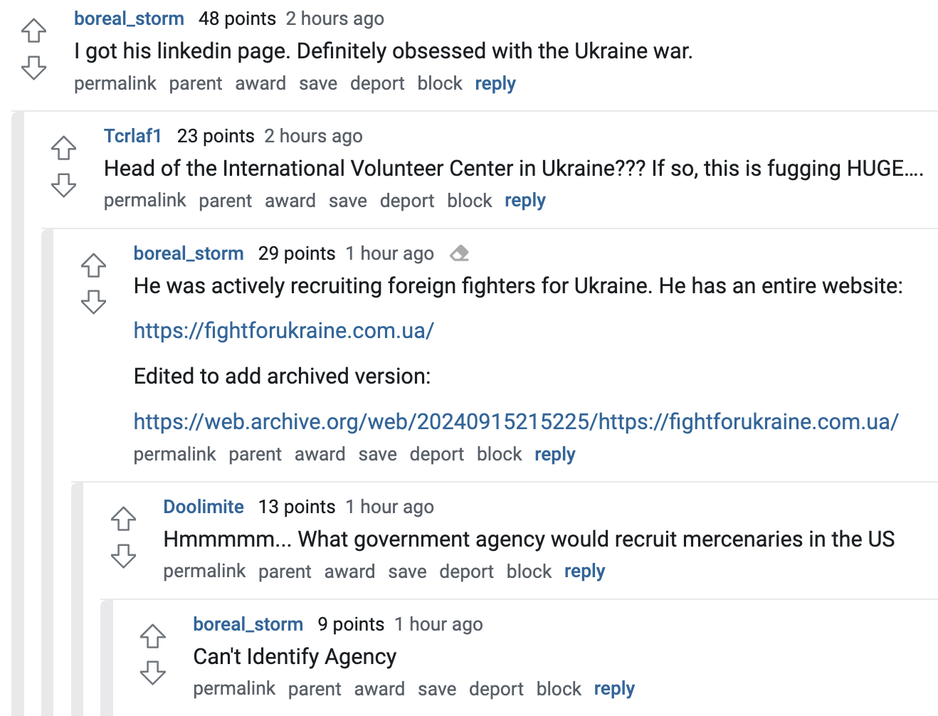 We can see references to these deleted comments further in the thread with enthusiasm for participating in the execution of the party in power: